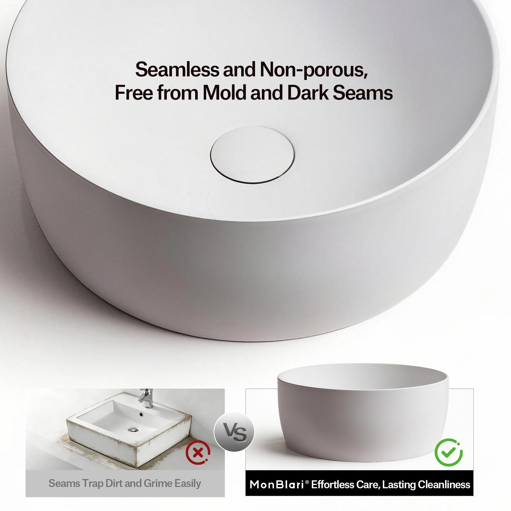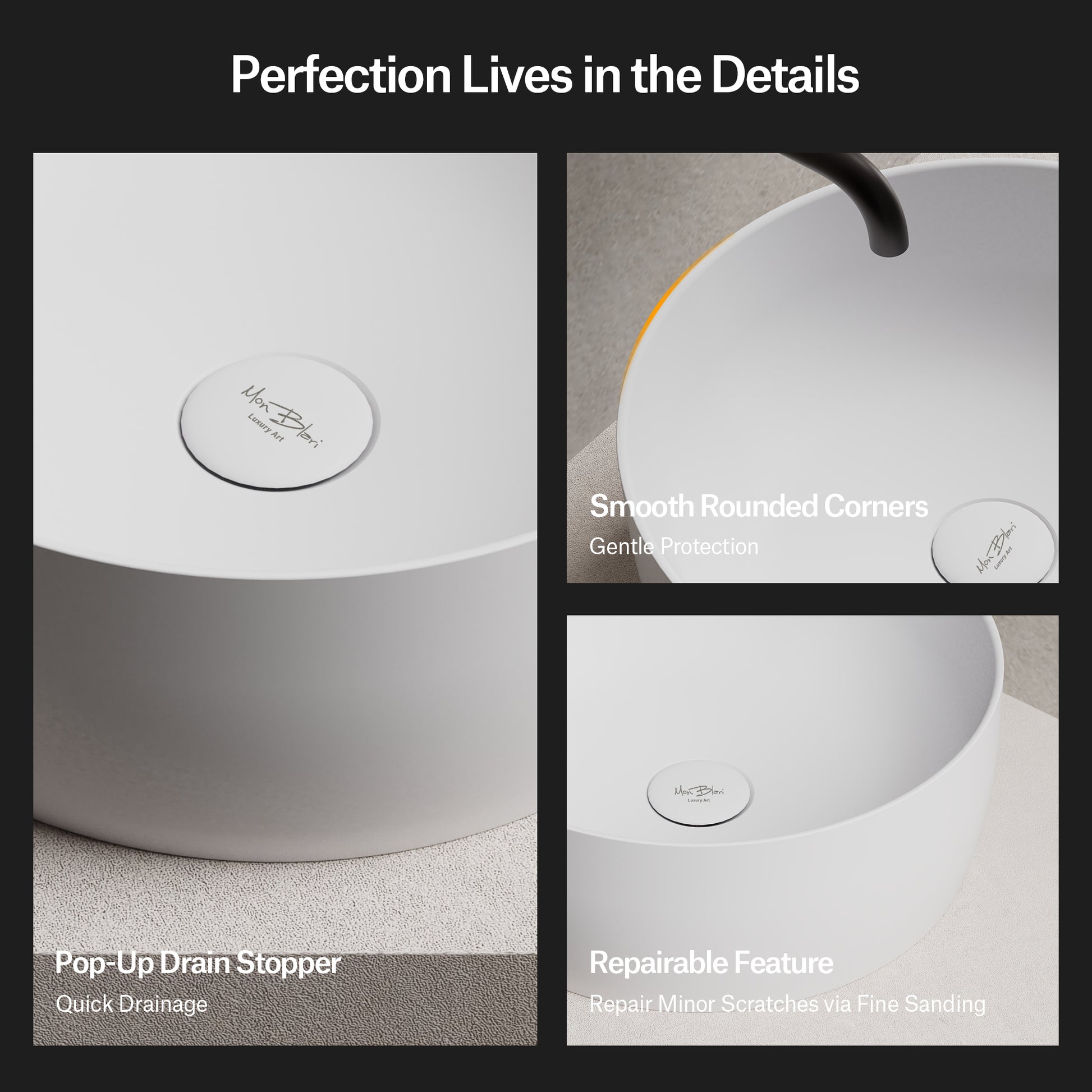 15.7 Inch MonBlari CANVA SERIES Solid Surface Vessel Bowl Sink Bathroom Sink