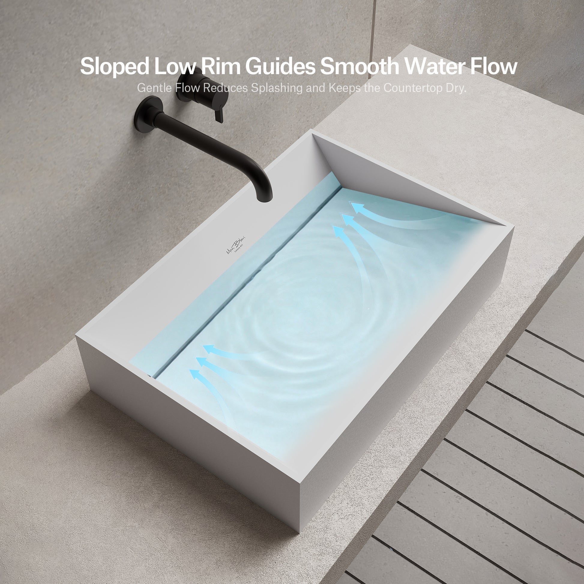 Anti-Splash Design: A precision-engineered basin slope and depth effectively prevent splashing, keeping your vanity area dry and clean.