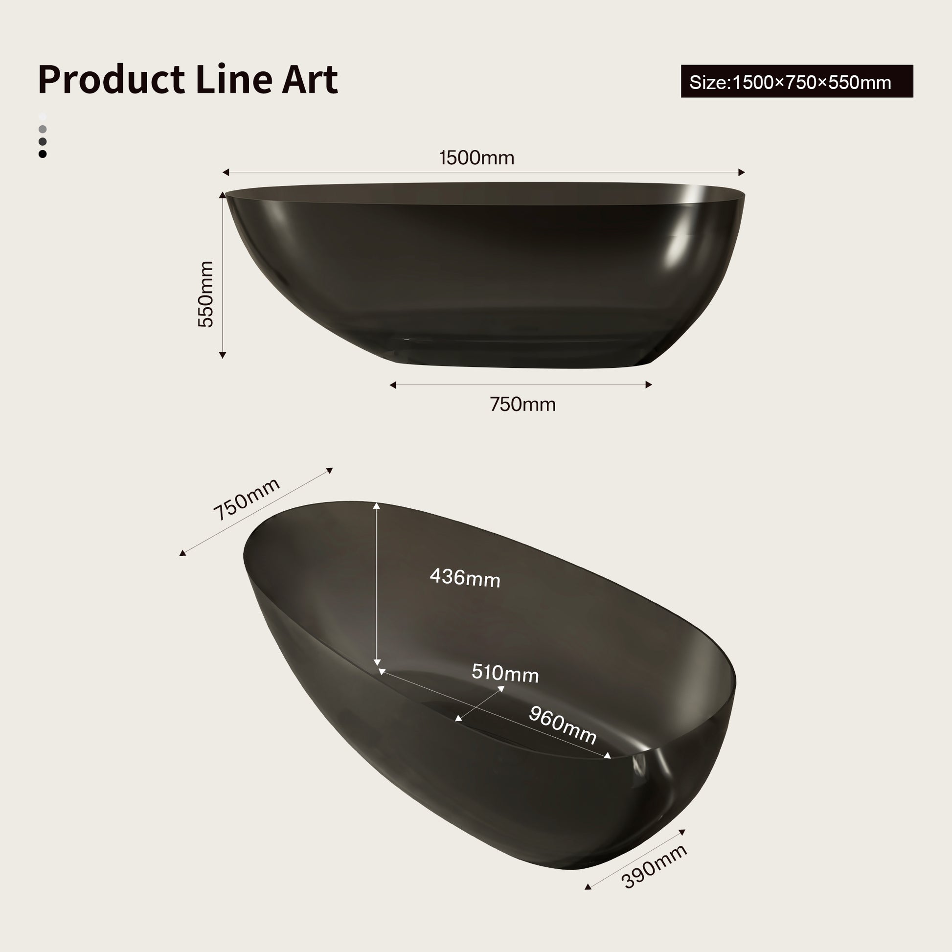 Reliable Engineering: Built with a 8mm Ultra-Thin Edge and a robust 300kg (660lbs) load capacity, this resin bathtub features smooth rounded corners for gentle protection against bumps.