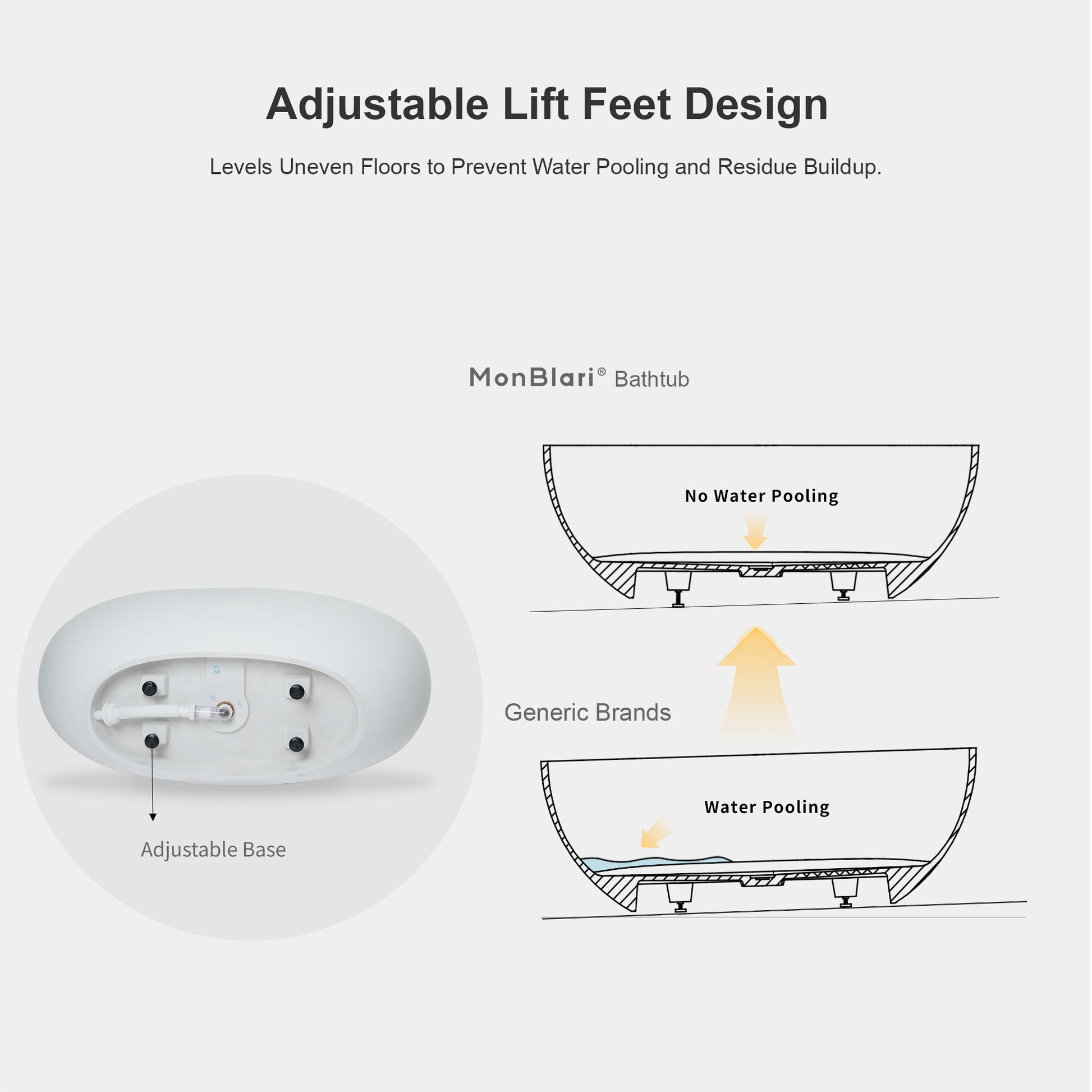 Precision Leveling System: Equipped with an Adjustable Lift Feet Design, this tub can be perfectly leveled on uneven floors to ensure optimal drainage and prevent water pooling.