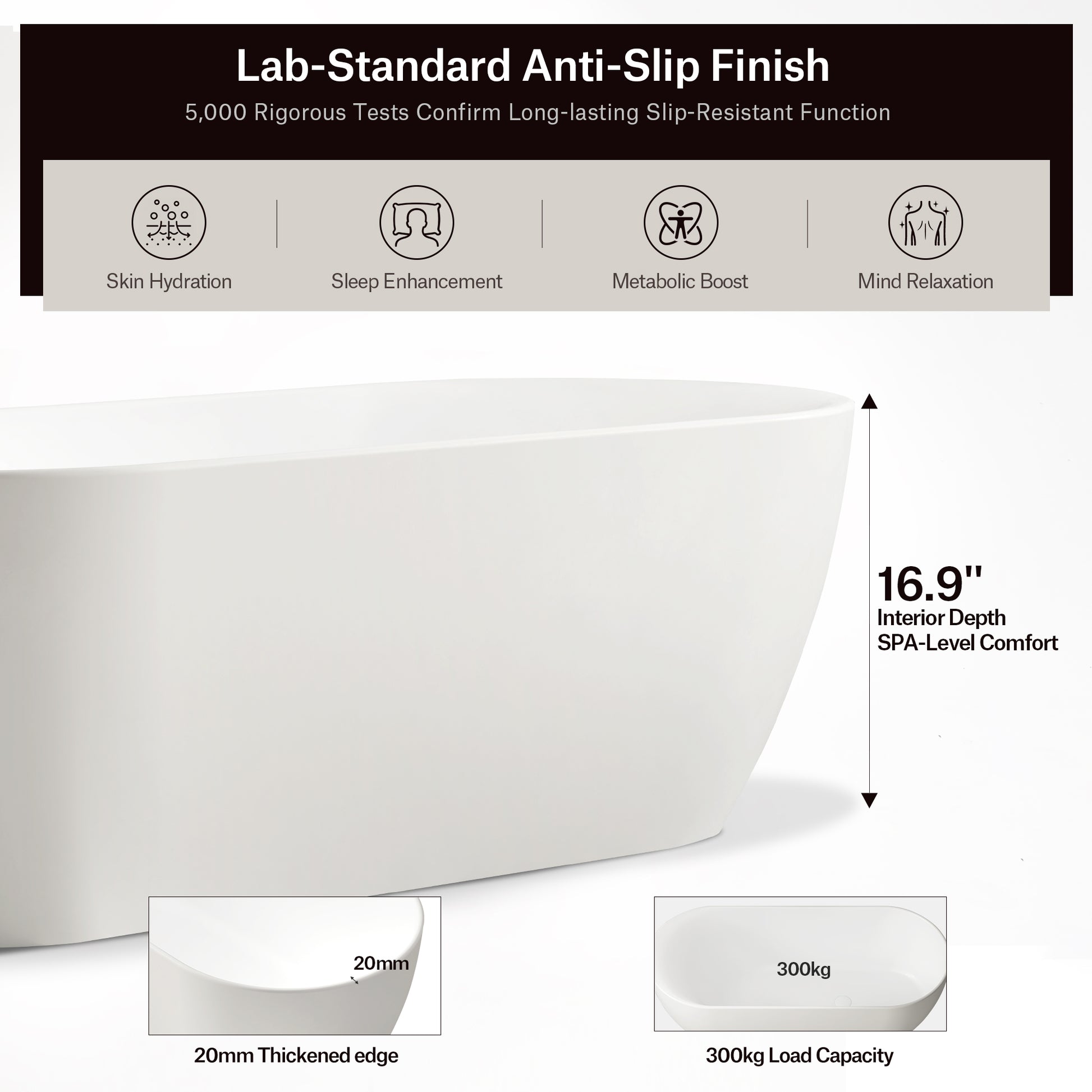 Superior Craftsmanship & Safety: Each tub undergoes in-house intelligent manufacturing with handcrafted finishing. The surface is enhanced with a lab-standard anti-slip finish and molecular sealing that is both yellowing and scratch-resistant.