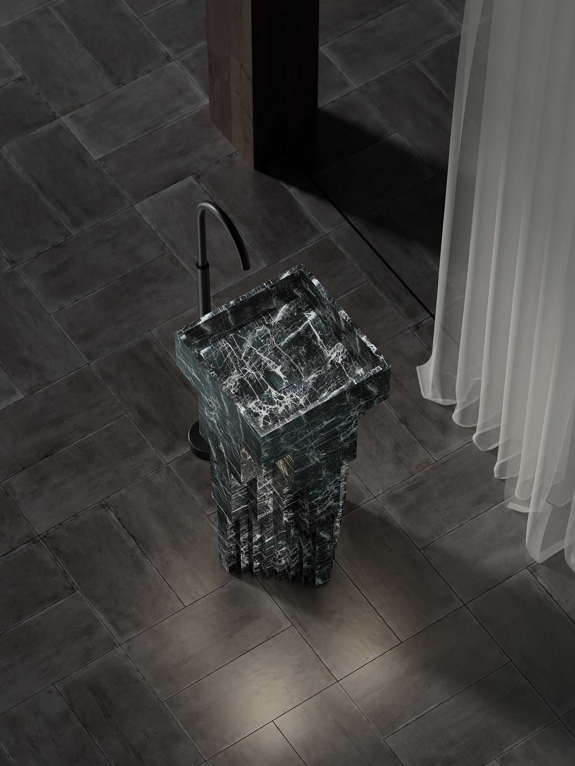 The result is a refined architectural statement that embodies timeless modernity and functional artistry. With its sleek vertical form and flawless marble finish, the Matrix pedestal sink transforms the bathroom into a space of balance, purity, and design intelligence.